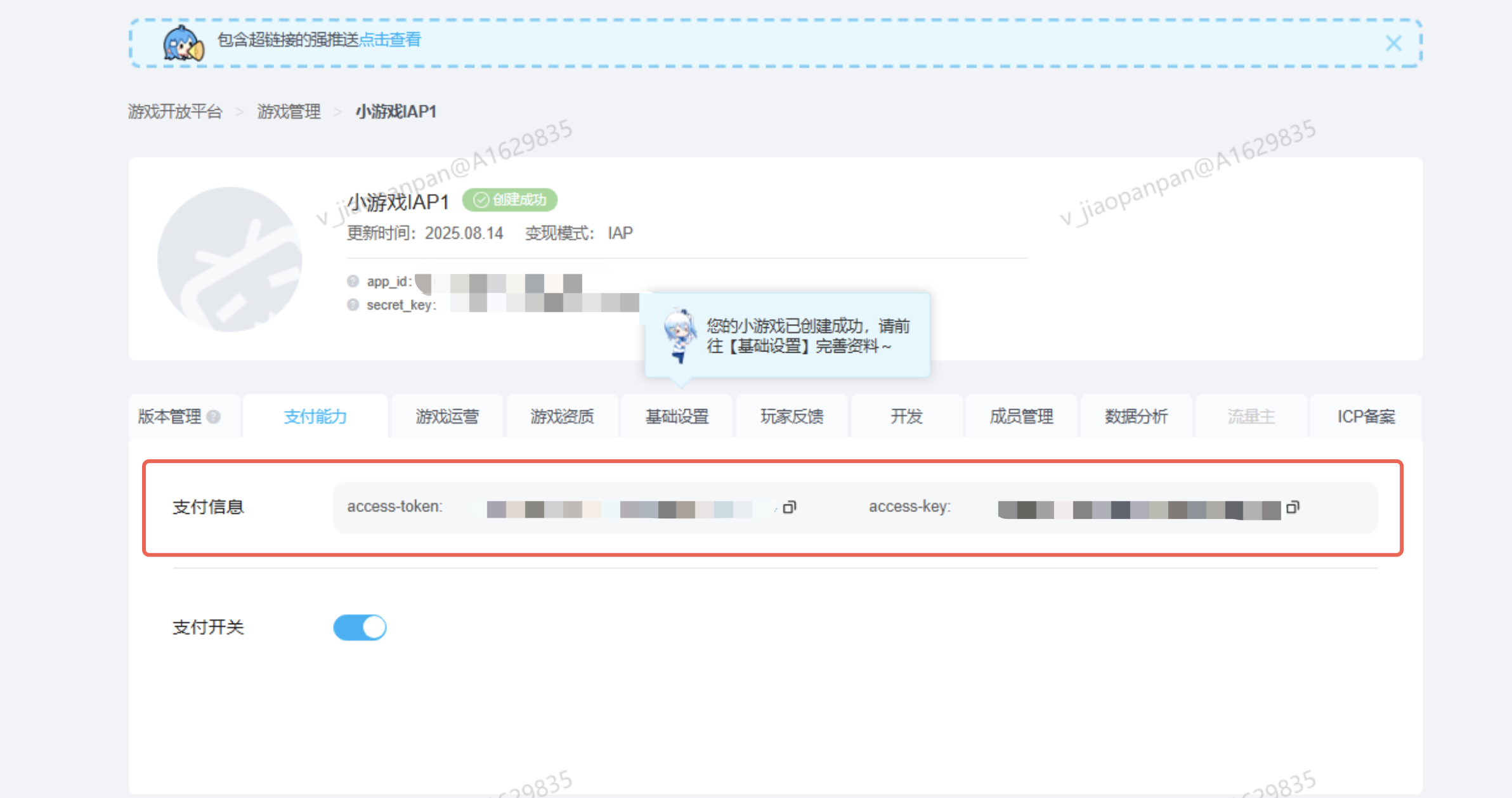小游戏支付需要在开平拿支付秘钥,请点击这里